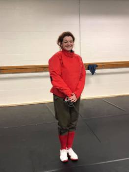Velah models the latest in historical fencing fashion
