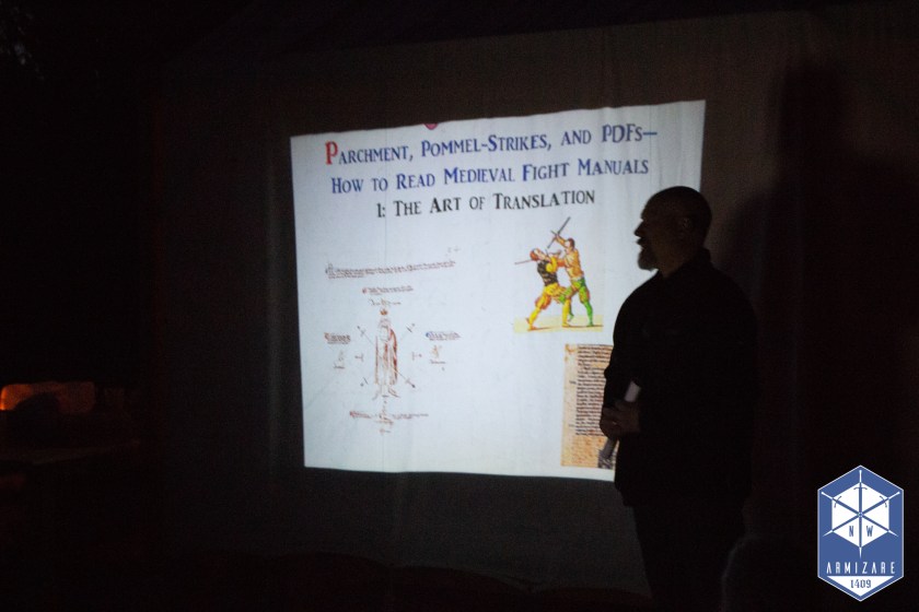 One of Jim’s goals is to build a viable historical sabre community in the Portland area specifically and the PNW in general. Though there have been fits and starts, some of these efforts have certainly helped. The first sabre seminar Jim put together, in 2015, covered Henry Angelo’s infantry sword manual (1845), the system under study at Academia Duellatoria (now defunct), where Jim occasionally fenced and helped prepare students for the AHF tourney. In this first seminar he collaborated with Velah Gilbert, then a student there, and a serious student of sabre.