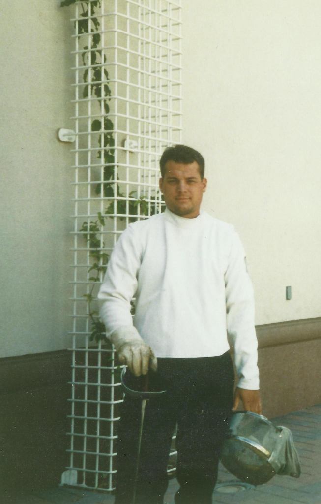 Jim began fencing foil in 1986 and has had the good fortune to work with several well-respected maestri since that time: Maestro Edwin “Buzz” Hurst (at UC Santa Barbara, CA), Maestro Al Couturier (at UC Santa Barbara and Salle d’Armes Couturier, Culver City, CA), and Maitre Delmar Calvert (at Salle Trois Armes, Portland, OR). Of these masters he spent the most time with M. Couturier and his assistants. Al was a student of Maestro Joseph Vince, a graduate of the Hungarian fencing program, who emigrated to the U.S. in the 1920s. Vince learned fencing at an exciting time in Budapest, a time when the influence of Giuseppe Radaelli’s reforms mixed with Hungarian elements to create the Italo-Hungarian school.