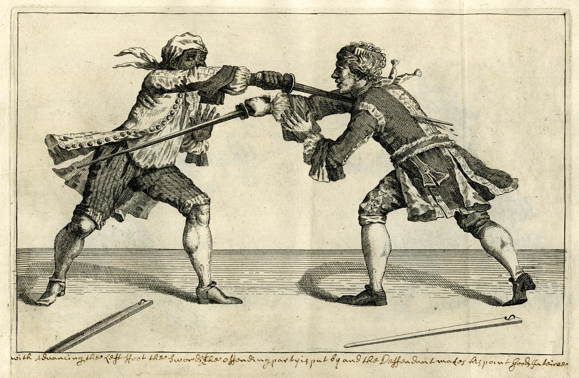 [1] De Liancour, for example, believed counter-attacks better suited for salle play than affairs on the ground (Le maitre d’armes/The Master of Arms, 1692, 13 in the pdf, 29; in Lynch’s translation, 36); Capt. John Godfrey, in his A Treatise upon the Useful Science of Defense, 1747, 12-13, expresses his dislike of the flanconade.