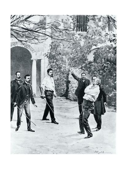 3. Fencer A: parries 5th, makes molinello to left cheek